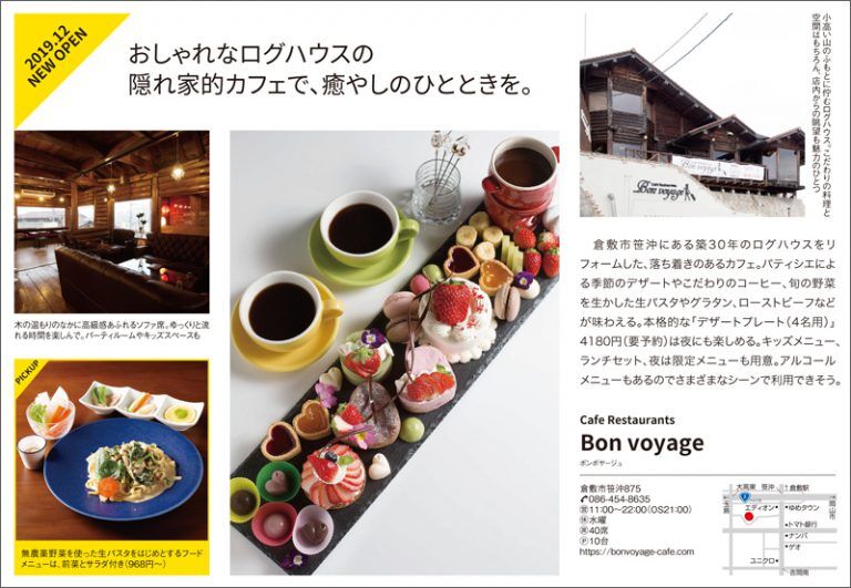 2020.01.25 雑誌掲載されました♪ 『月刊タウン情報おかやま』 2020年2月号(2020年1月25日発売)に Bon Voyage(ボンボヤージュ)が 掲載されました♪ 【ご予約限定】ディナーのデザートプレート(4名様用)を大公開! 特別な夜に是非ご予約下さいませ。 ← 次 一覧ページ 前 →
